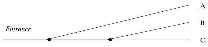 (b) Now assume that, conditional on and previously passed vertical levels, the horizontal positions and are uniformly distributed on . In other words, for all attainable values and for all ,