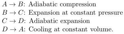 (d) Consider a simplified Otto cycle (an idealised petrol engine) involving an ideal gas and consisting of the following four reversible steps: