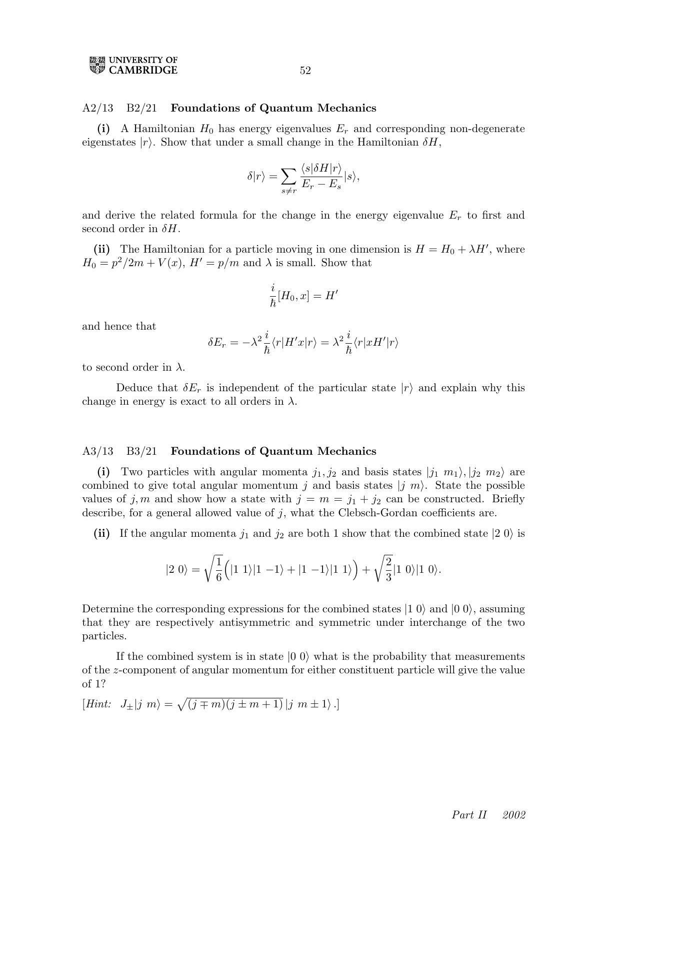 (i) Two particles with angular momenta and basis states are combined to give total angular momentum and basis states . State the possible values of and show how a state with can be constructed. Briefly describe, for a general allowed value of , what the Clebsch-Gordan coefficients are.