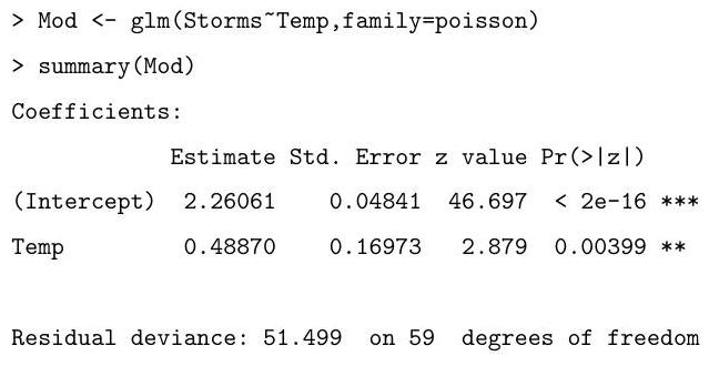 commentThe table below summarises the yearly numbers of named storms in the Atlantic basin over the period 1944-2004, and also gives an index of average July ocean temperature in the northern hemisphere over the same period. To save space, only the data for the first four and last four years are shown.