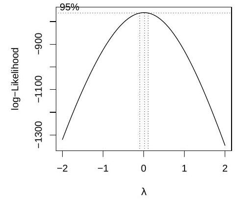 Using the output, write down a prediction interval for the ratio between the total payments per policy year for two cars of the same brand and with the same value of Bonus, one of which has a Kilometres value one higher than the other. You may express your answer as a function of quantiles of a common distribution, which you should specify.